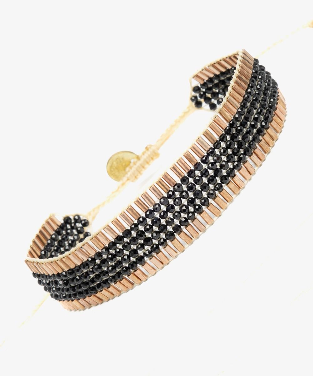 Discover the subtle elegance of our handcrafted bracelet, made by hand with carefully selected semiprecious stones and gold-plated brass pieces that add a delicate and lasting shine.Its woven design combines harmonious tones and metallic details that bring to life a versatile piece, perfect for everyday wear as well as special occasions.