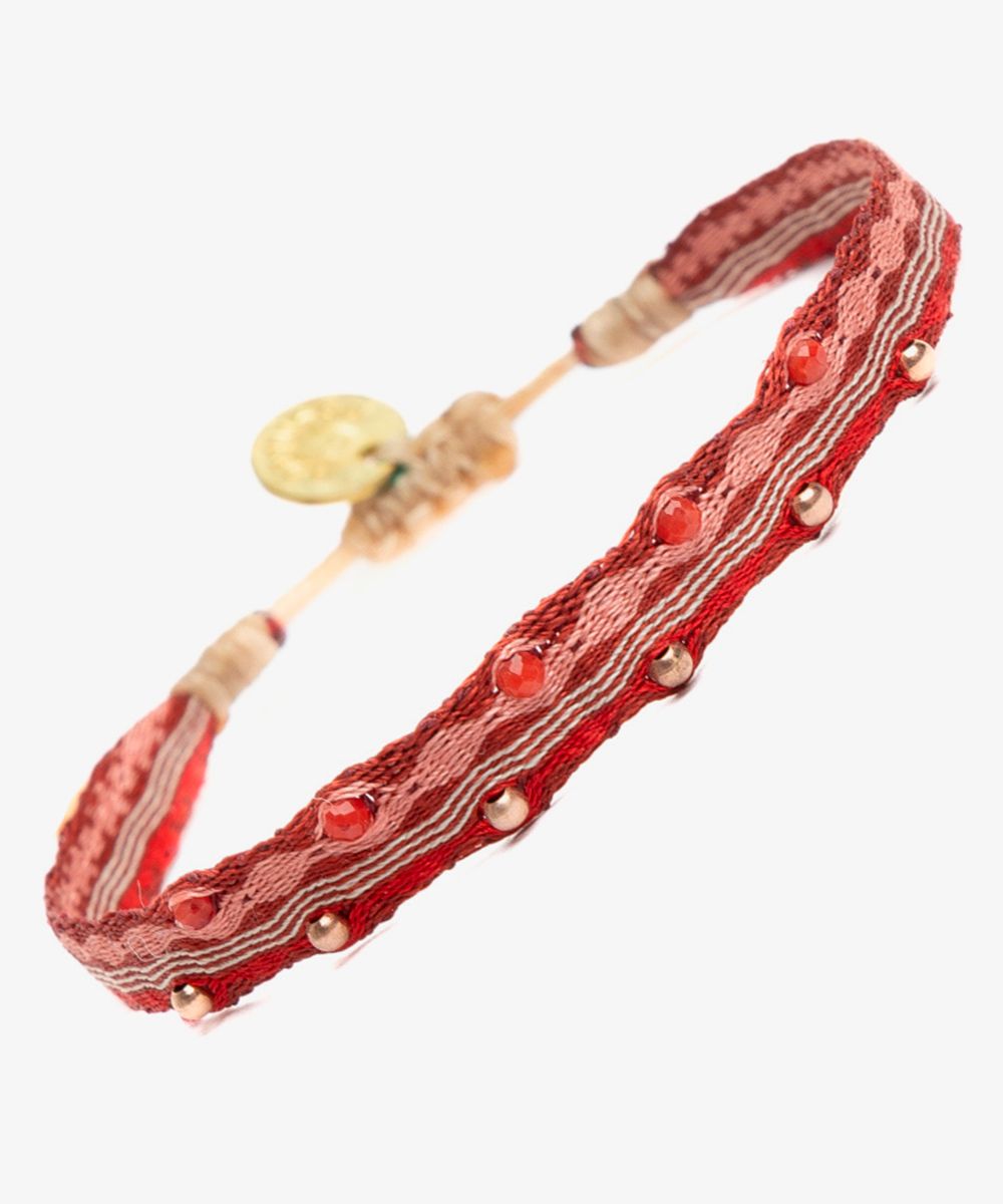 Guanábana da un giro a su tradicional ARGANTINA y la convierte en un accesorio brillante y colorido, con cuentas de piedras semipreciosas que aportan sofisticación a la pulsera. La argantina ALAMEIN está tejida a mano por artesanas usando un telar manual y acabada con un cierre ajustable y una medallita en bronce con nuestro mantra para que no lo olvides: BE POSITIVE.