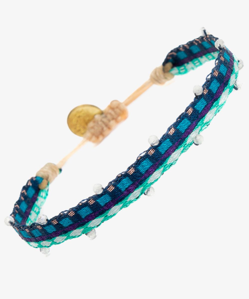 Guanábana da un giro a su tradicional ARGANTINA y la convierte en un accesorio brillante y colorido, con cuentas de piedras semipreciosas que aportan sofisticación a la pulsera. La argantina ALAMEIN está tejida a mano por artesanas usando un telar manual y acabada con un cierre ajustable y una medallita en bronce con nuestro mantra para que no lo olvides: BE POSITIVE.