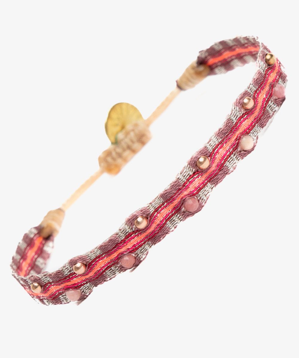 Guanábana da un giro a su tradicional ARGANTINA y la convierte en un accesorio brillante y colorido, con cuentas de piedras semipreciosas que aportan sofisticación a la pulsera. La argantina ALAMEIN está tejida a mano por artesanas usando un telar manual y acabada con un cierre ajustable y una medallita en bronce con nuestro mantra para que no lo olvides: BE POSITIVE.