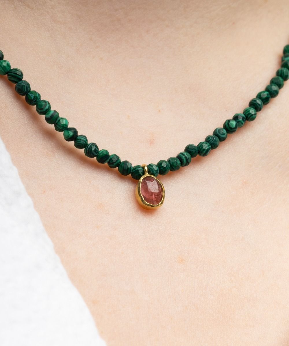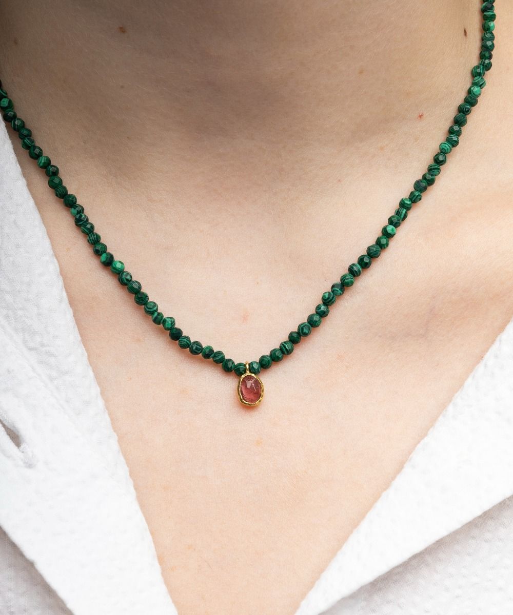 Delicate and feminine, a complement with an ethnic touch that will finish off any look, both in summer and winter. This exclusive Guanábana design features a pendant that includes a semi-precious stone, giving the necklace an elegant touch. Our tip: you can combine necklaces of different lengths to create your own outfit. Our tip: you can combine necklaces of different lengths to create your own outfit.