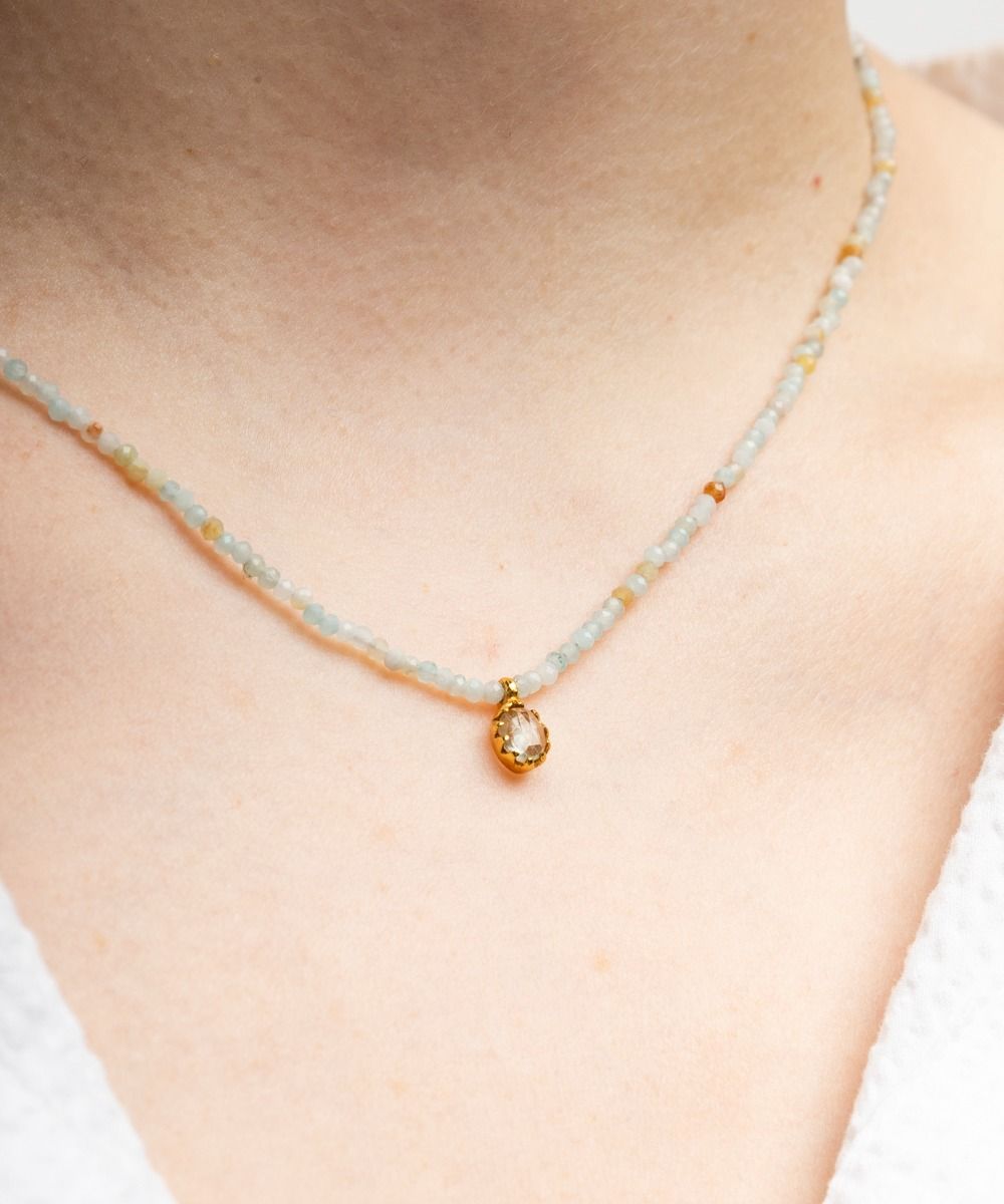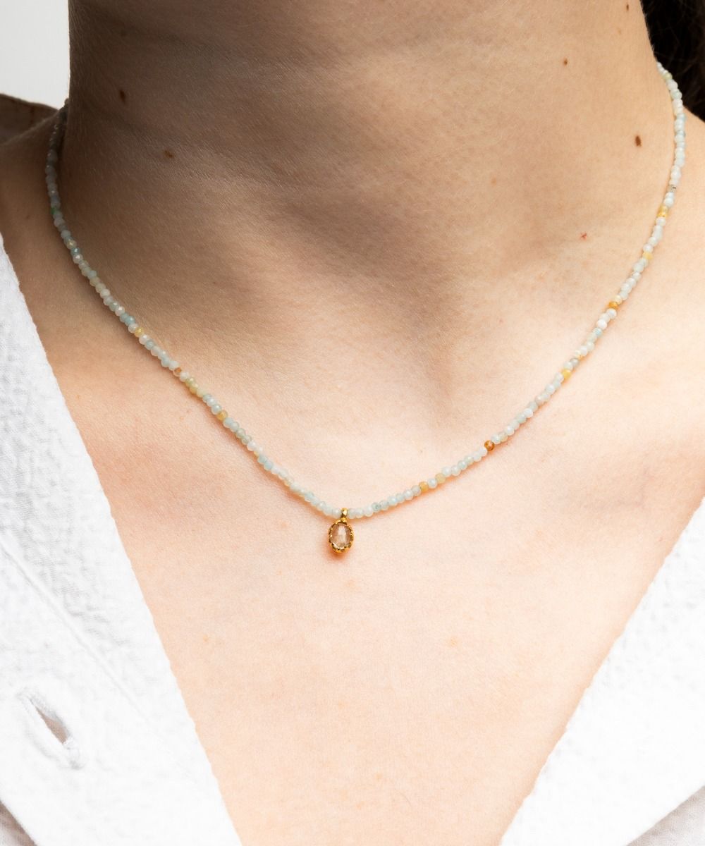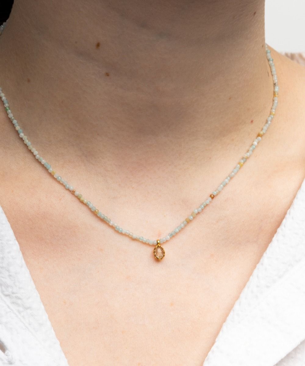 Delicate and feminine, a complement with an ethnic touch that will finish off any look, both in summer and winter. This exclusive Guanábana design features a pendant that includes a semi-precious stone, giving the necklace an elegant touch. Our tip: you can combine necklaces of different lengths to create your own outfit. Our tip: you can combine necklaces of different lengths to create your own outfit. Amazonite represents a balance between masculine and feminine energy. It is considered a symbol of the balance between feminine values, sweetness and goodness, and the practicality that symbolizes the masculine gender. Gift this necklace to your friend who is going to start a new love affair or who is going to take a next step in their relationship.