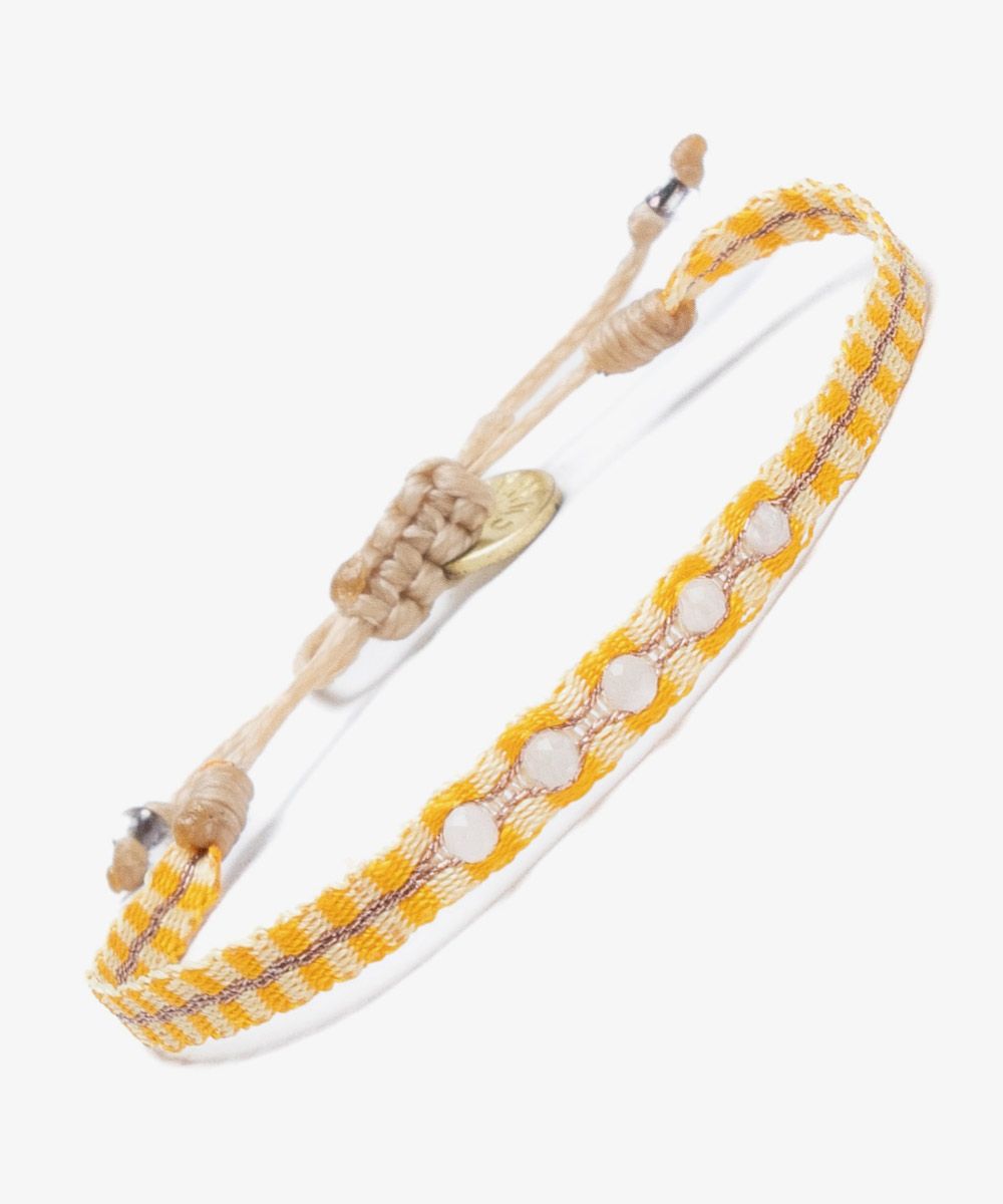 Guanábana da un giro a su tradicional ARGANTINA y la convierte en un accesorio brillante y colorido, con cuentas de piedras semipreciosas que aportan sofisticación a la pulsera. La argantina ALAMEIN está tejida a mano por artesanas usando un telar manual y acabada con un cierre ajustable y una medallita en bronce con nuestro mantra para que no lo olvides: BE POSITIVE.