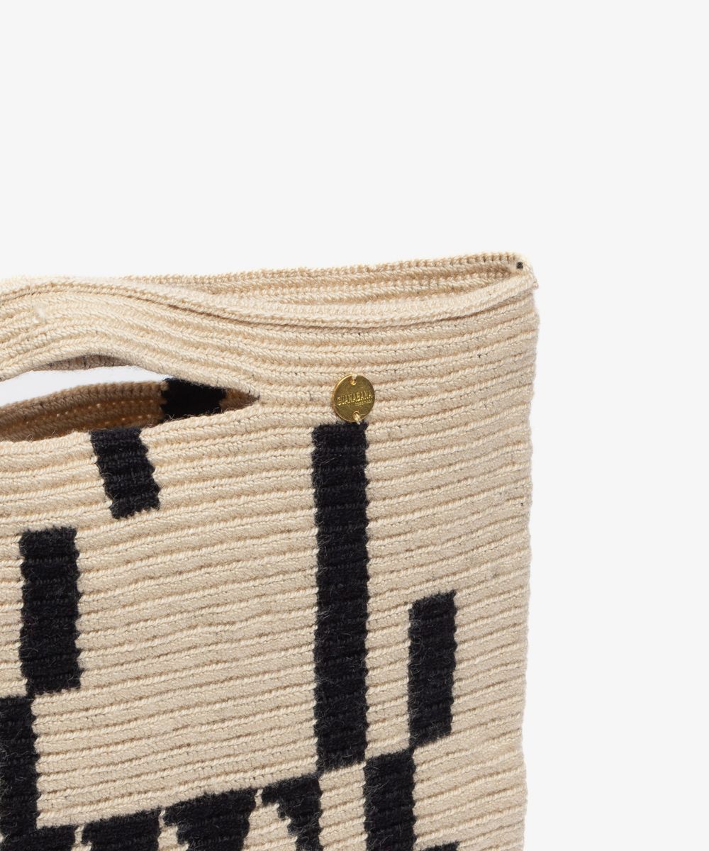 Siempre buscando la innovación, Guanábana combina la tradición del tejido a mano con la vida urbana a través de este bolso, diseñado en Madrid y tejido a ganchillo a mano en Colombia. Este modelo surgió como una revolución entre los artesanos Wayuu, quienes están acostumbrados a trabajar con bolsos de base redonda. Terminado con una etiqueta de bronce con nuestro mantra para que no lo olvides: SEA POSITIVO. Este bolso está diseñado exclusivamente por Guanábana.