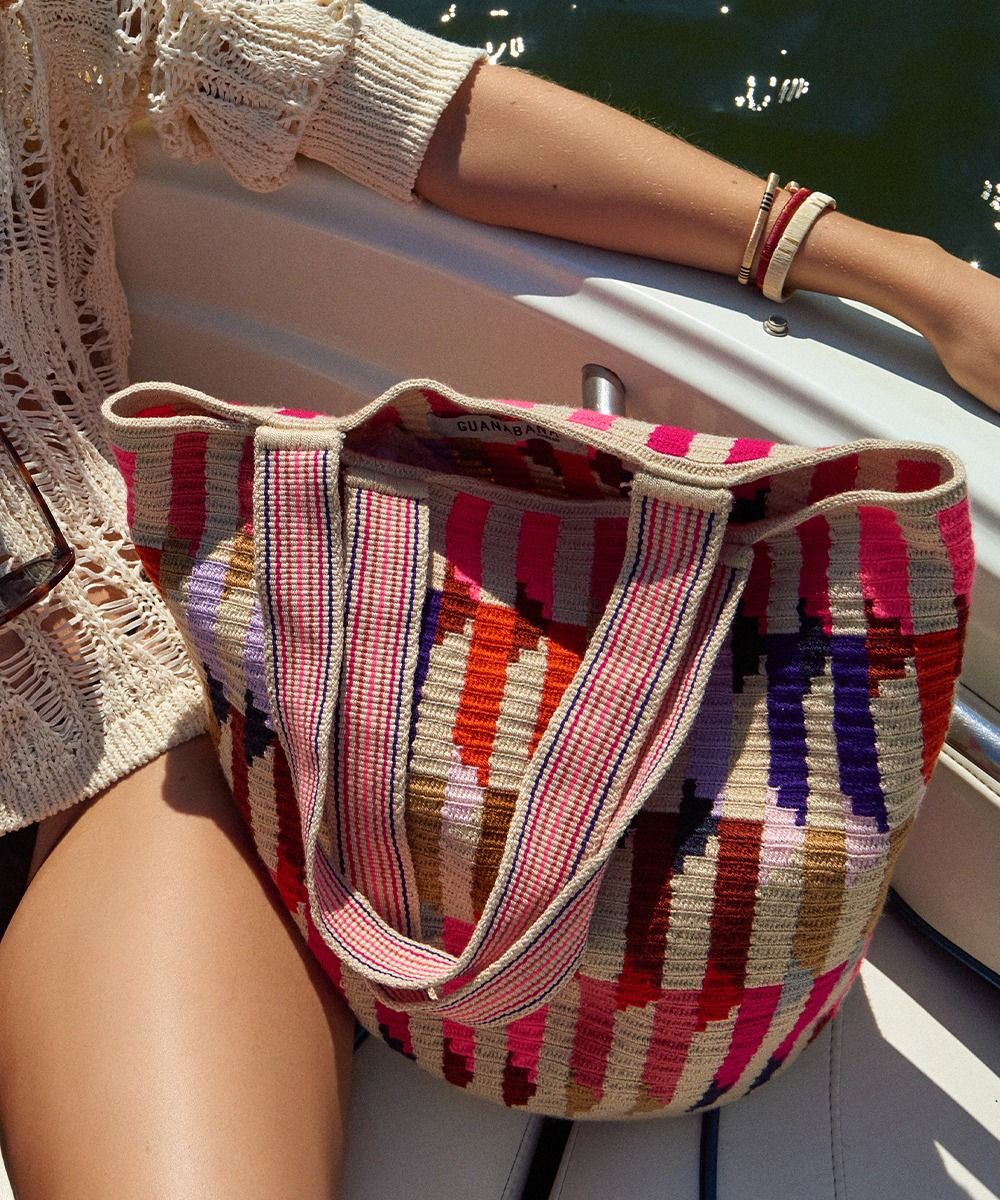 GUANABANA ha retomado el clásico bolso de las compras y le ha añadido fantásticos diseños geométricos y vibrantes colores que le dan ese aire chic y bohemio absolutamente irresistible. Diseñado en Madrid y tejido a mano por artesanas Wayuu en Colombia, este bolso tiene un punto más suelto y un asa larga y cómoda que lo hacen esencial. El resultado: un bolso unisex todo-terreno, que no vas a querer soltar jamás. Todos los bolsos llevan nuestro característico sello en bronce con el leitmotiv de GUANABANA: BE POSITIVE.