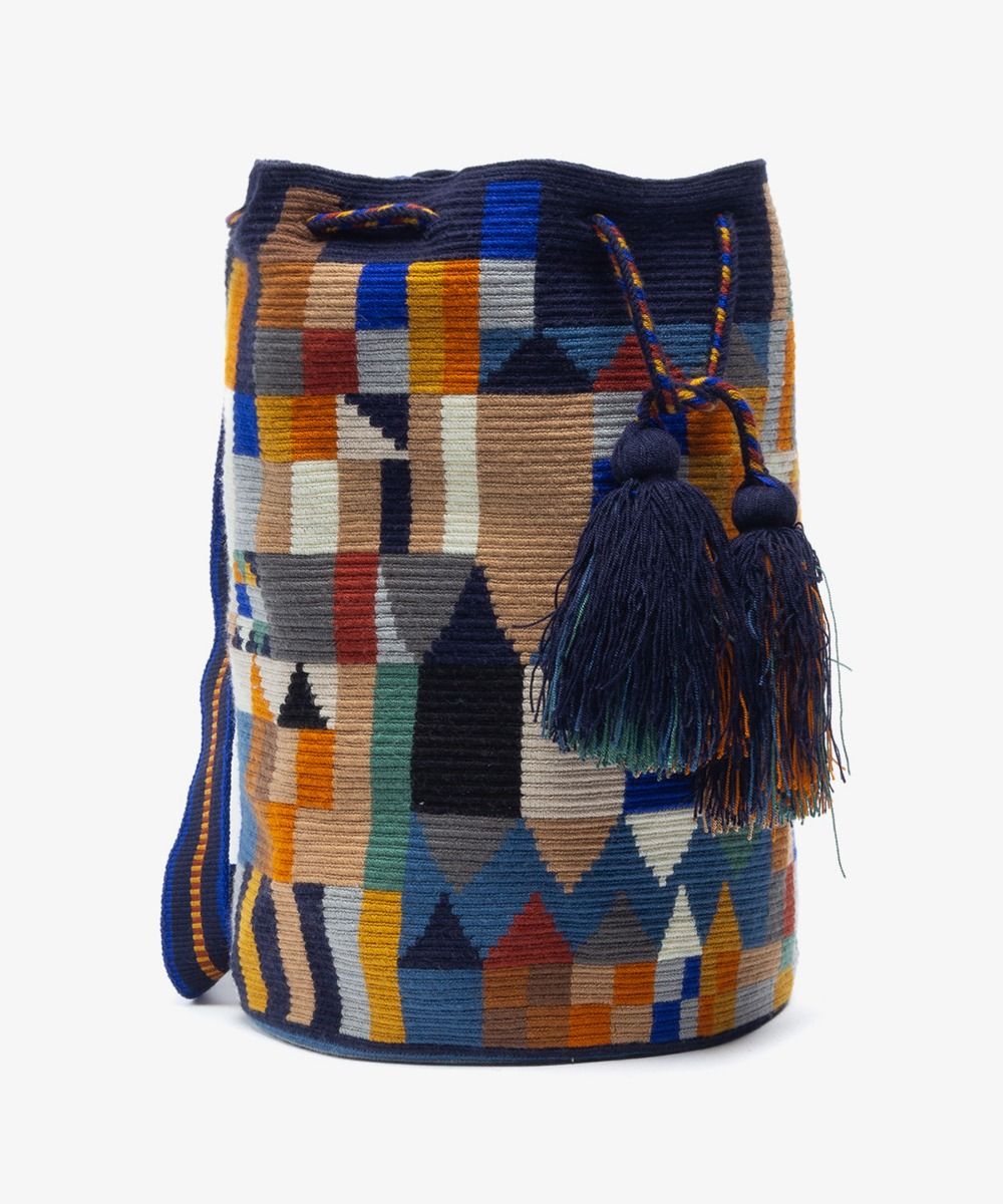 DISEÑADO EN MADRID - 100% HECHO A MANO POR ARTESANAS EN COLOMBIA. GUANÁBANA CREE EN LAS PEQUEÑAS DIFERENCIAS: LOS TAMAÑOS Y DISEÑOS PUEDEN TENER LIGERAS VARIACIONES CON EL MODELO DE LA FOTO. LAVADO A MÁQUINA EN AGUA FRÍA. Material: 100% acrílico Dimensión aproximada: Altura: 40 cm Diámetro: 28 cm Asa: 100 cm
